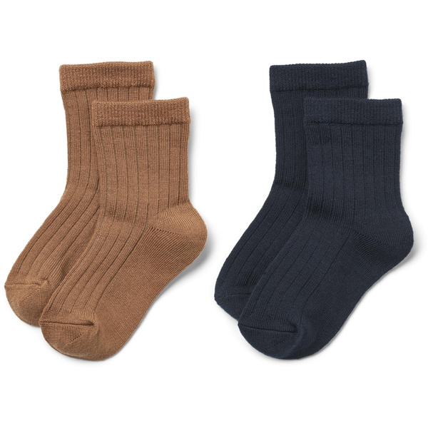 Steven - Skarpetki z wełny merynosów bezuciskowe w prążki dziecięce - Granatowy