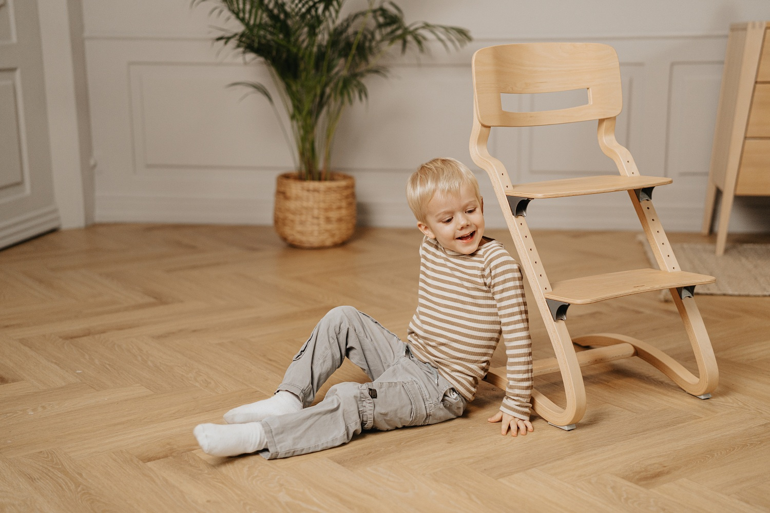 Bezpieczne, wygodne i stylowe. Dzięki pięknemu i trwałemu wzornictwu krzesełko Louie™ zostało stworzone z szacunkiem do oryginalnego krzesełka Leander Classic™, łącząc ponadczasowy nordycki design z wysoką funkcjonalnością i ergonomią.