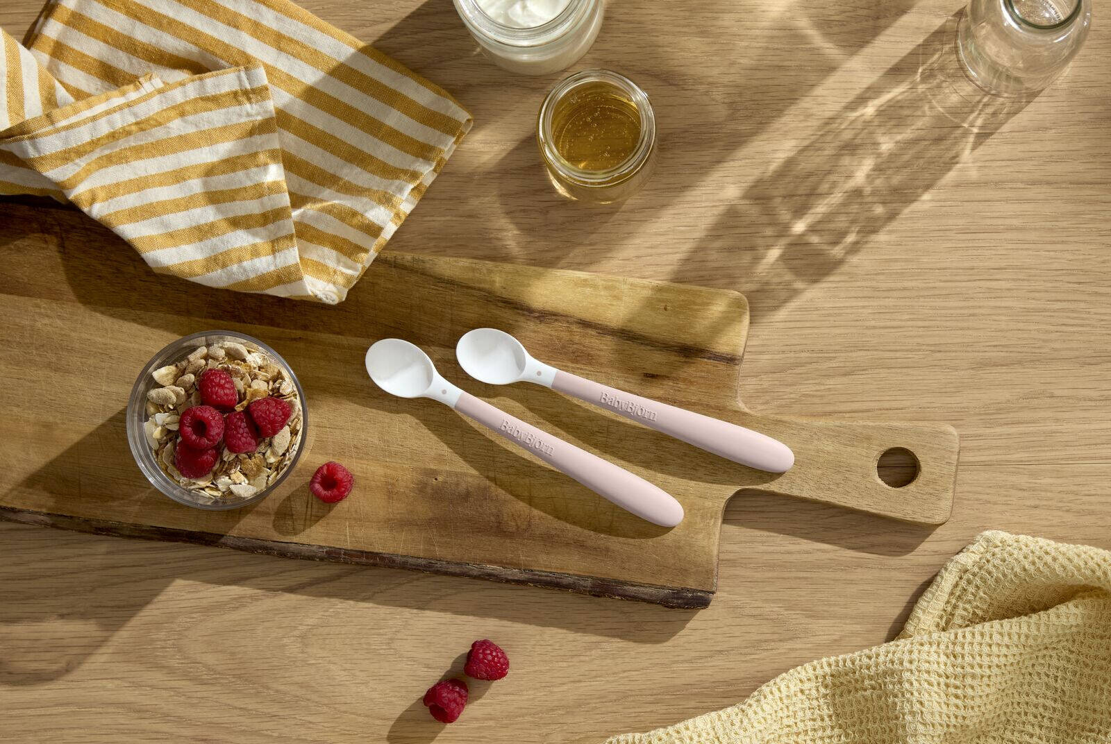 - BABYBJORN - łyżeczki dla dzieci to idealne pierwsze sztućce dla Twojego dziecka. Poręczne, wygodne idealnie leżą w dłoni dziecka. Kolorowe, mają zaokrąglone krawędzie, które ułatwiają nabieranie jedzenia.