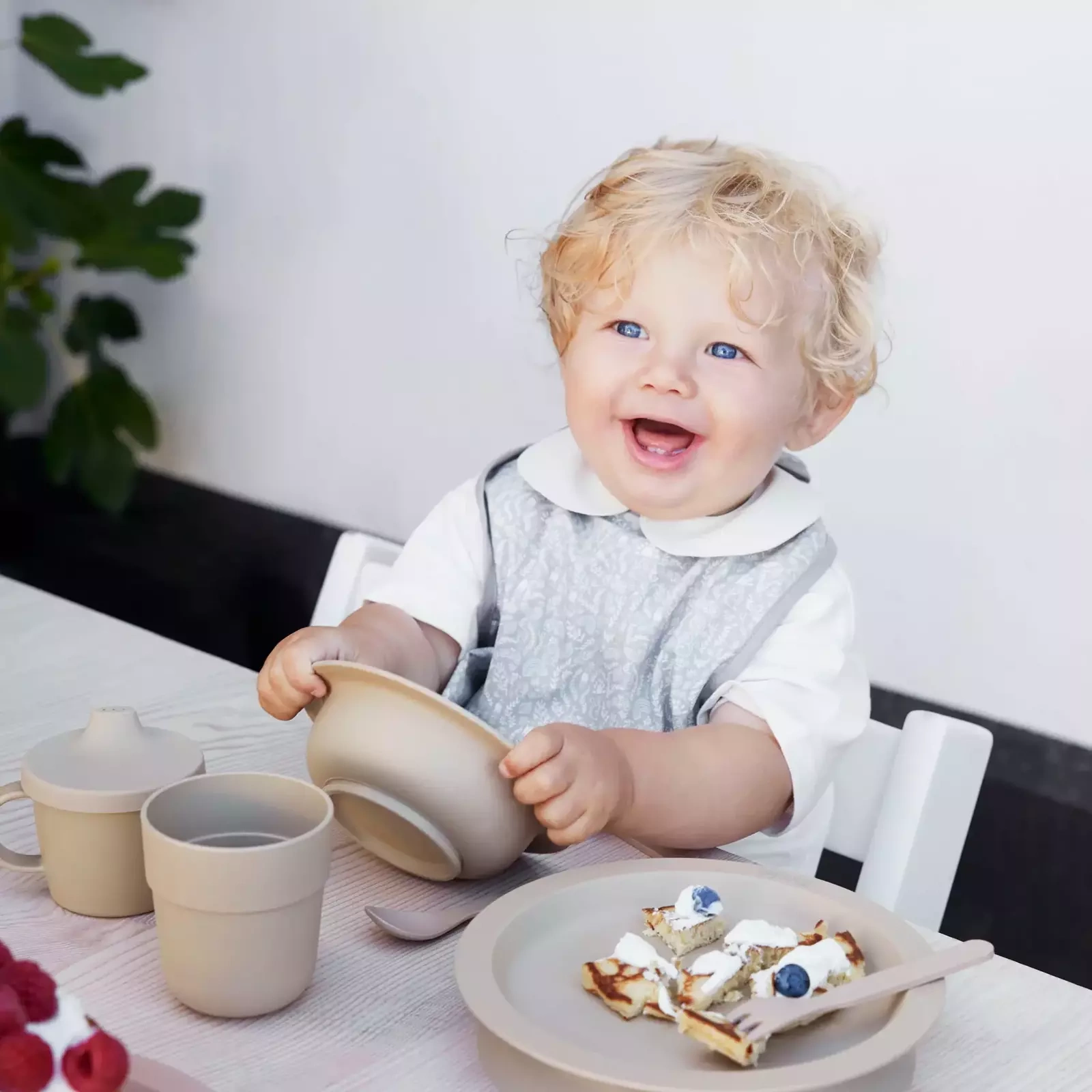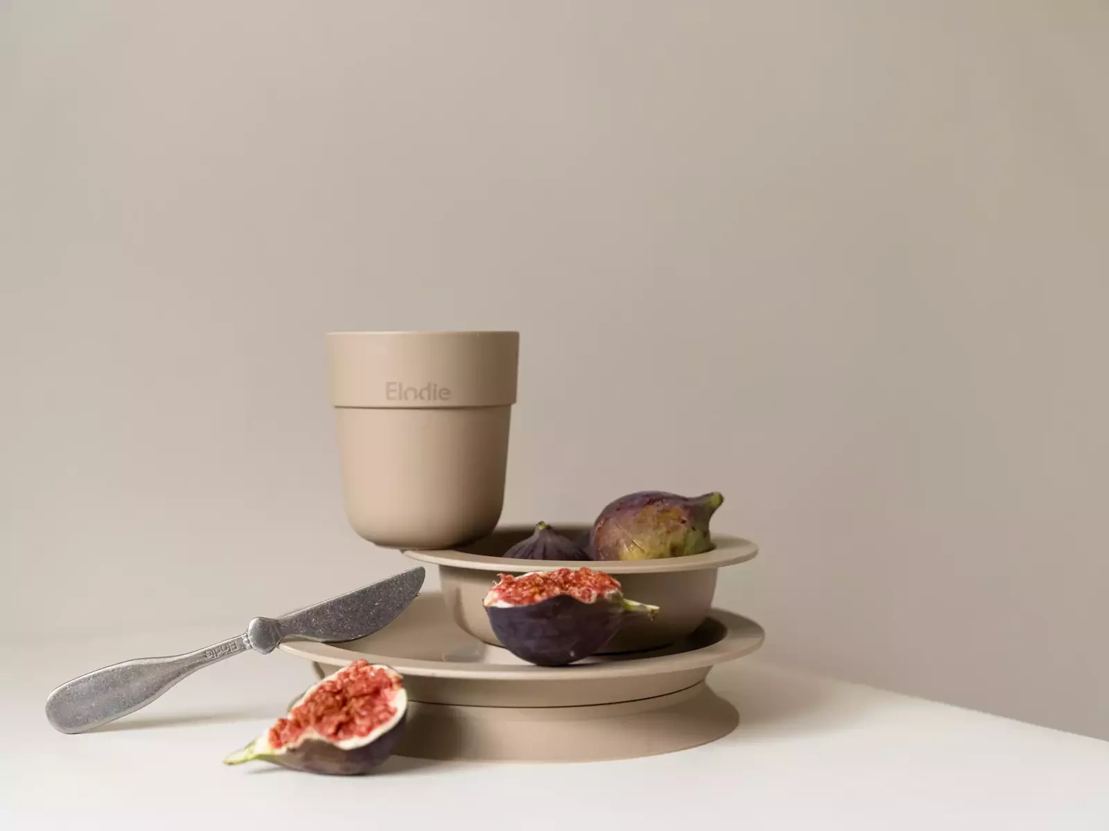 • 3-częściowy zestaw obiadowy dla dzieci Elodie Details składający się z talerza, miski i kubka wykonanych z materiałów przyjaznych dla środowiska.