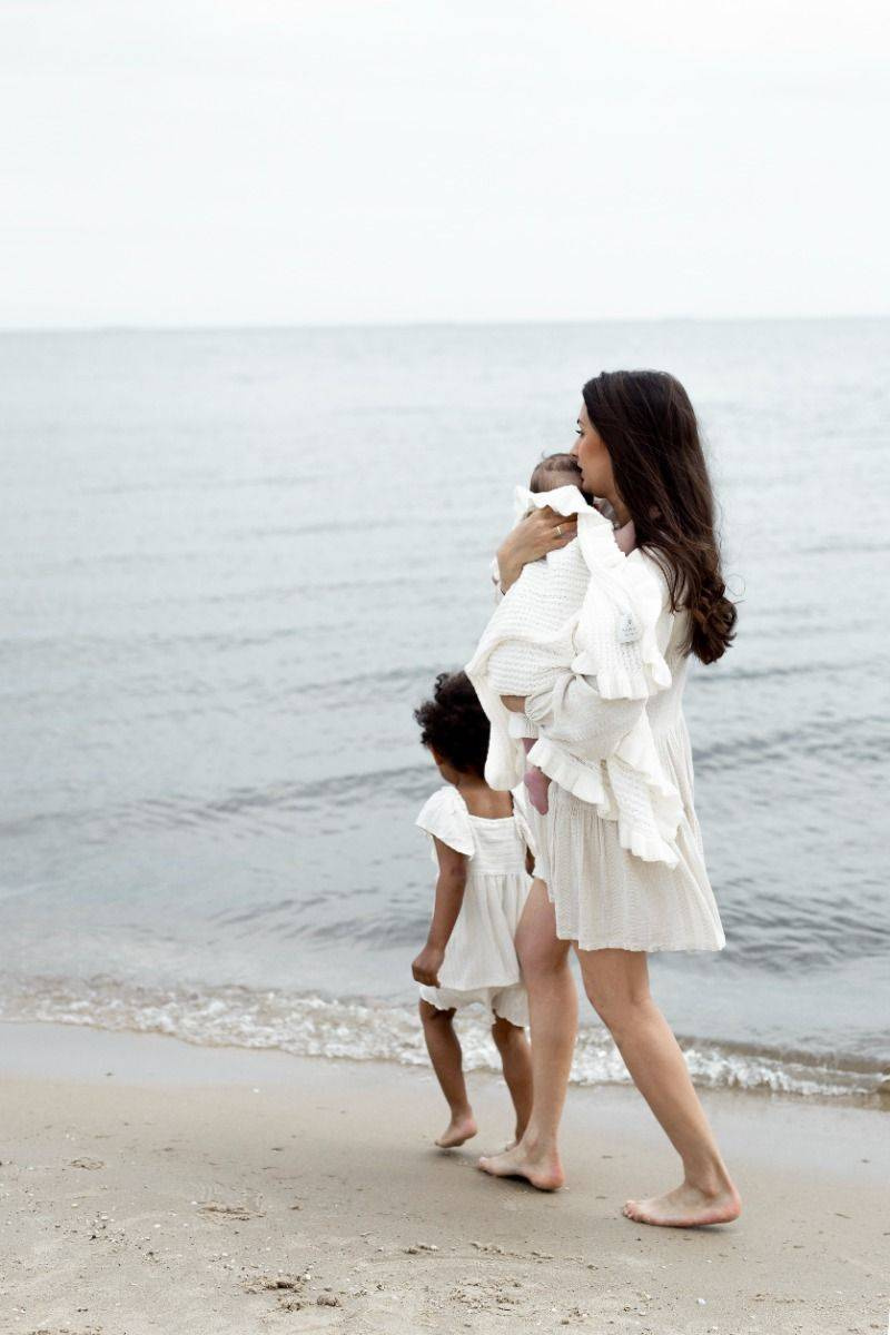 My Memi - Bambusowy kocyk z falbanką 85x105 - light beige