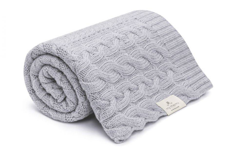 - My Memi - Kocyk warkocz ze 100% wełny merino grey - premium collection