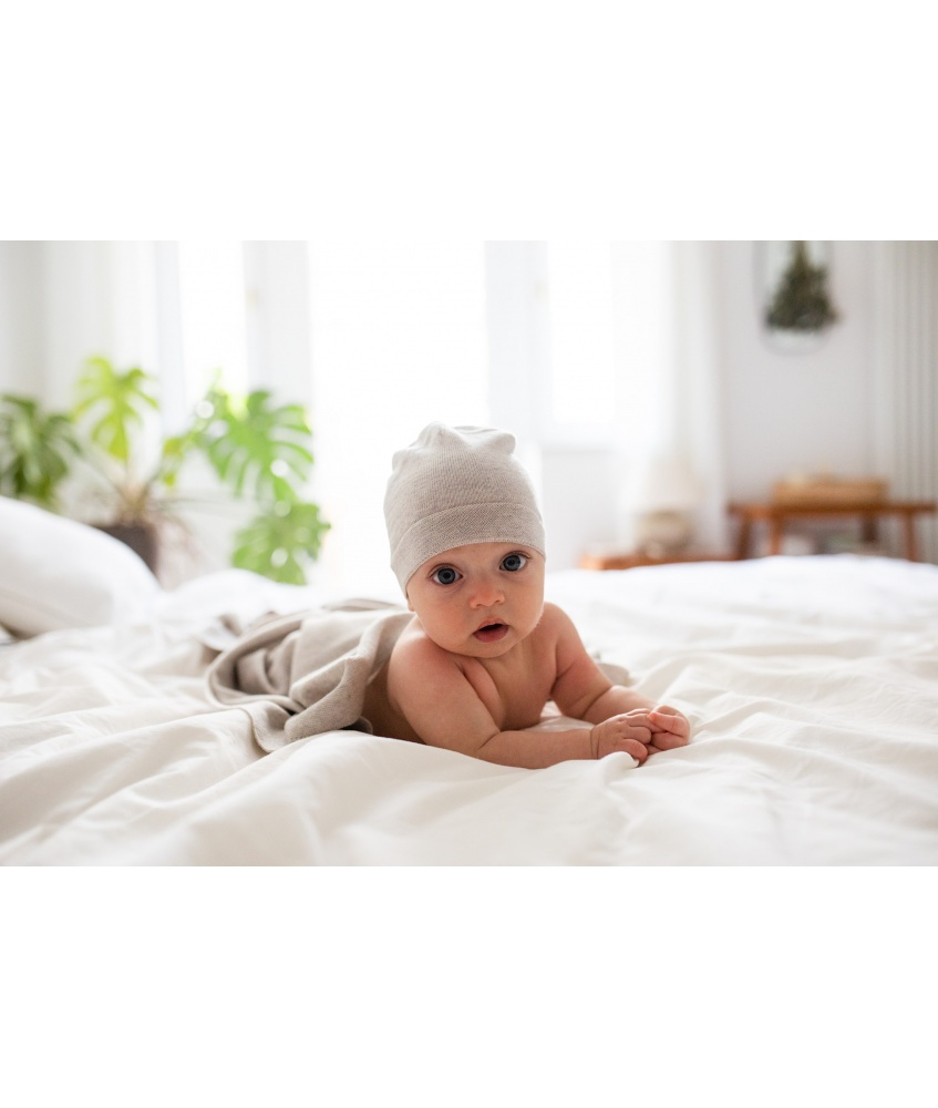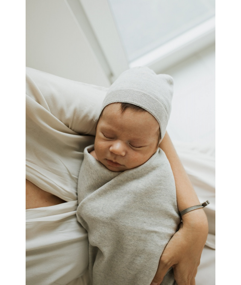 kocyk merino Cozy yarnami możesz kupić w zestawie z dopasowaną kolorystycznie czapeczką całoroczną.
