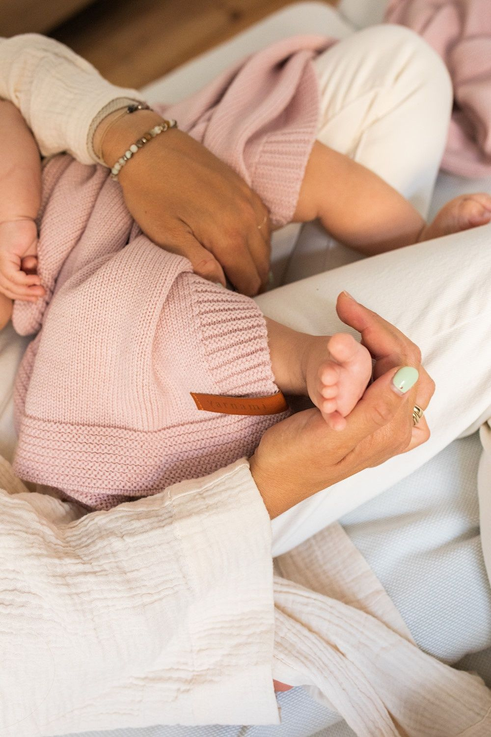 kocyki yarnami znakowane są elegancką, mięciutką metką, wykonaną z ekologicznego, skóropodobnego materiału, która podkreśla unikatowy charakter każdego produktu