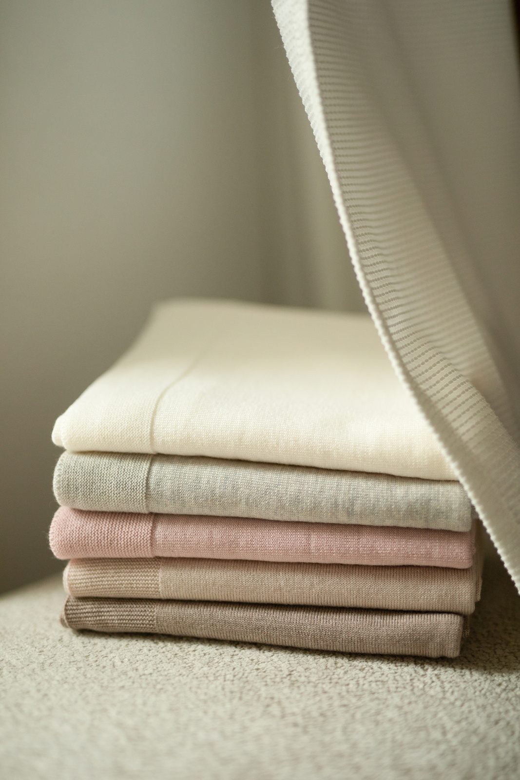 Jeśli wszystko się zgadza wybarwiamy całą, wielką partię przędzy, która następnie trafia do dziewiarni. Kiedy koce schodzą z maszyn dziewiarskich, wysyłane są do ekologicznej pralni, która stabilizuje rozmiar koca, wykurcza wszystkie luźne oczka i za pomocą bezpiecznych środków piorących wykańcza cały proces produkcyjny.