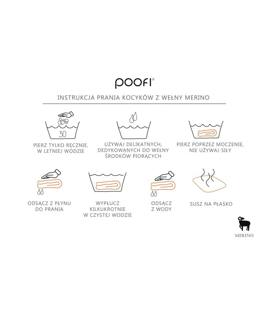 Zalecamy delikatne pranie ręczne i płukanie w letniej wodzie o temperaturze max. 30 stopni. Używać płynów przeznaczonych wyłącznie do prania wełny, np różowy Perwoll. Suszyć na płasko oraz unikać suszenia poprzez wysokie temperatury typu kaloryfer lub słońce. Wełna merino nie brudzi się tak jak inne włókna. Posiada samoczyszczące "łuski", które sprawiają, że ma właściwości antybakteryjne i nie wchłania zapachów, dlatego aby odświeżyć kocyk wystarczy go przewietrzyć.