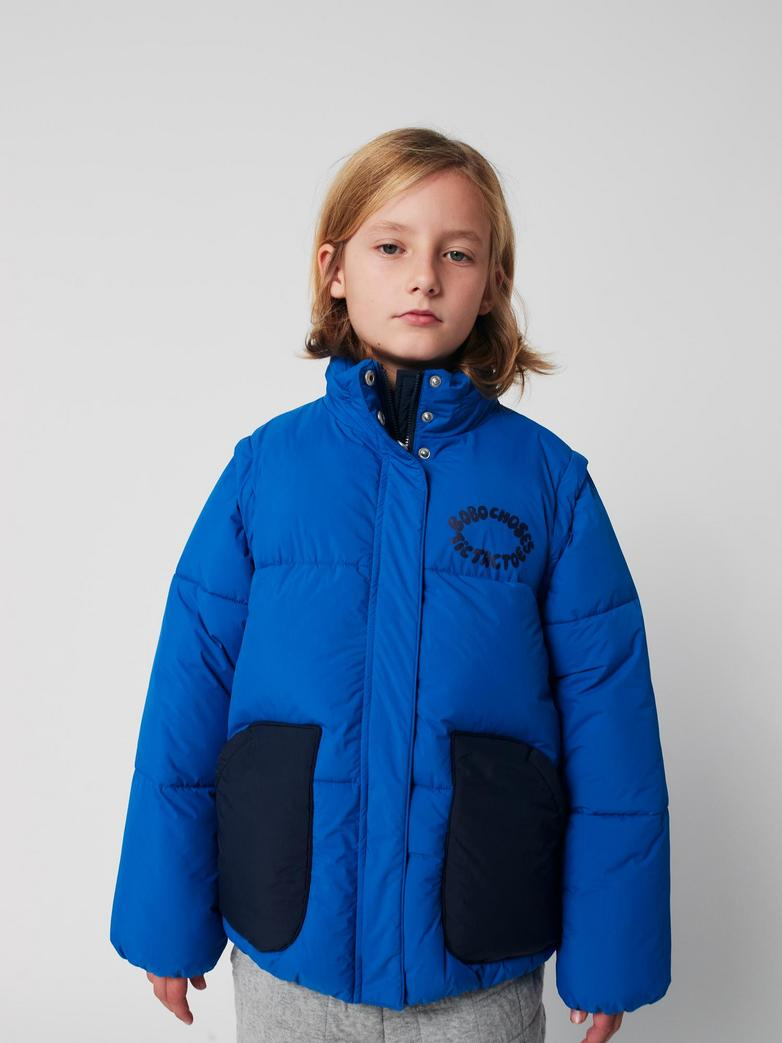 Kurtka Tic Tac Toe Padded od Bobo Choses to ciepła i praktyczna propozycja na chłodniejsze dni. W całości wykonana z materiałów pochodzących z recyklingu – wytrzymały poliamid na zewnątrz oraz miękkie, ocieplające wypełnienie z poliestru z recyklingu – gwarantuje komfort noszenia i ochronę przed zimnem.