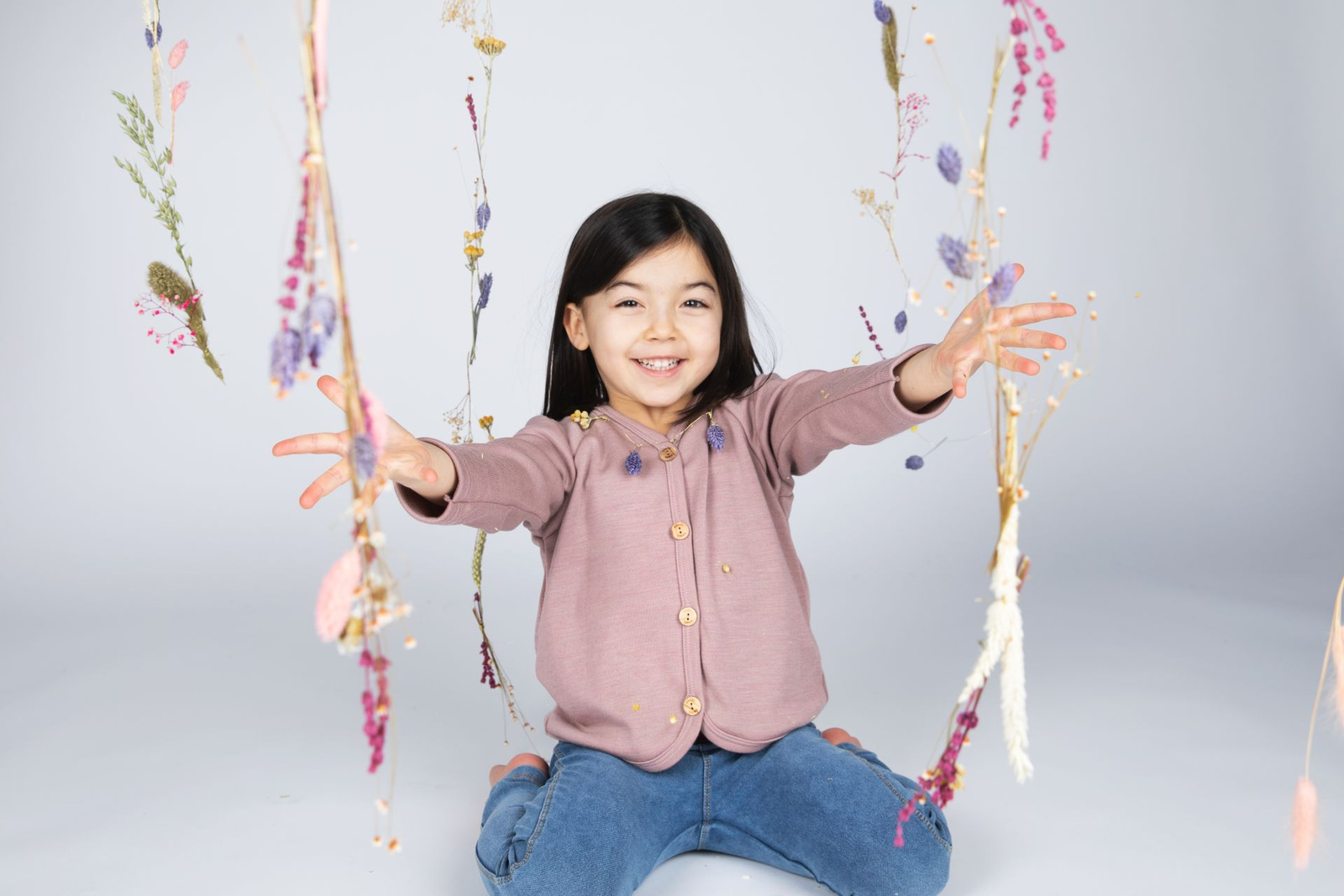 Wełna merino zapewnia naturalną termoregulację – ogrzewa, gdy jest chłodno, i chroni przed przegrzaniem, gdy dziecko jest aktywne. Jedwab nadaje tkaninie miękkości i delikatności, dzięki czemu kardigan jest wyjątkowo przyjemny w dotyku i odpowiedni nawet dla wrażliwej skóry.