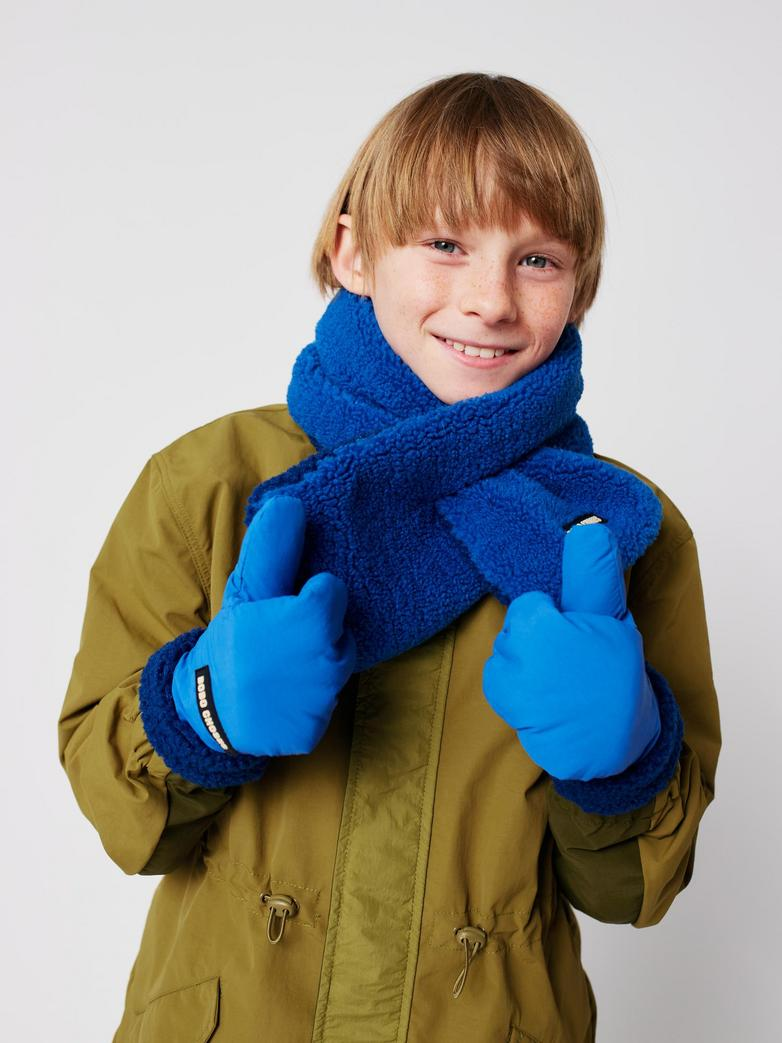 Bobo Choses Sheepskin Neck Warmer to miękki, przyjemny w dotyku ocieplacz na szyję, który doskonale chroni przed chłodem i wiatrem. Wykonany w 100% z recyklingowanego poliestru, imituje futerko owcze – jest przyjazny dla planety i delikatny dla skóry dziecka. Idealny na jesień i zimę, łatwy do założenia i wygodniejszy niż klasyczny szalik.