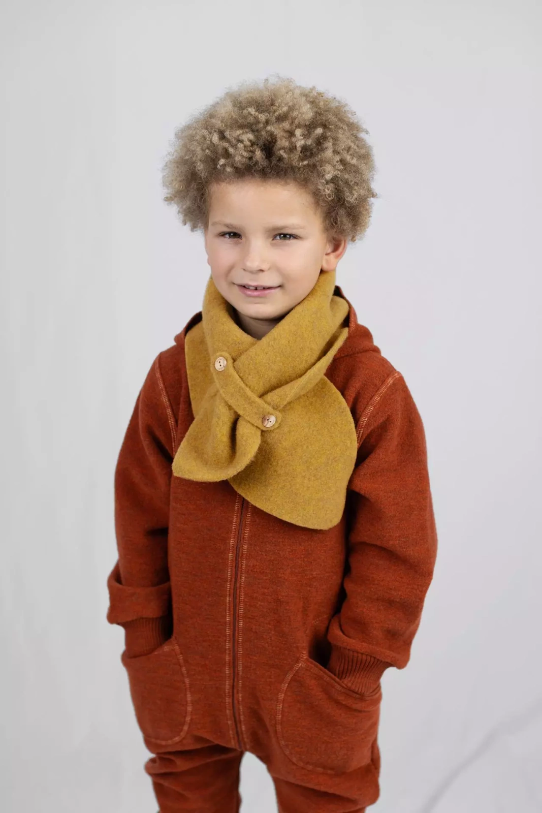 - Bezpieczny design: Dzięki swojej konstrukcji szalik łatwo dopasować do szyi dziecka, zapewniając mu pełną ochronę przed wiatrem i chłodem.