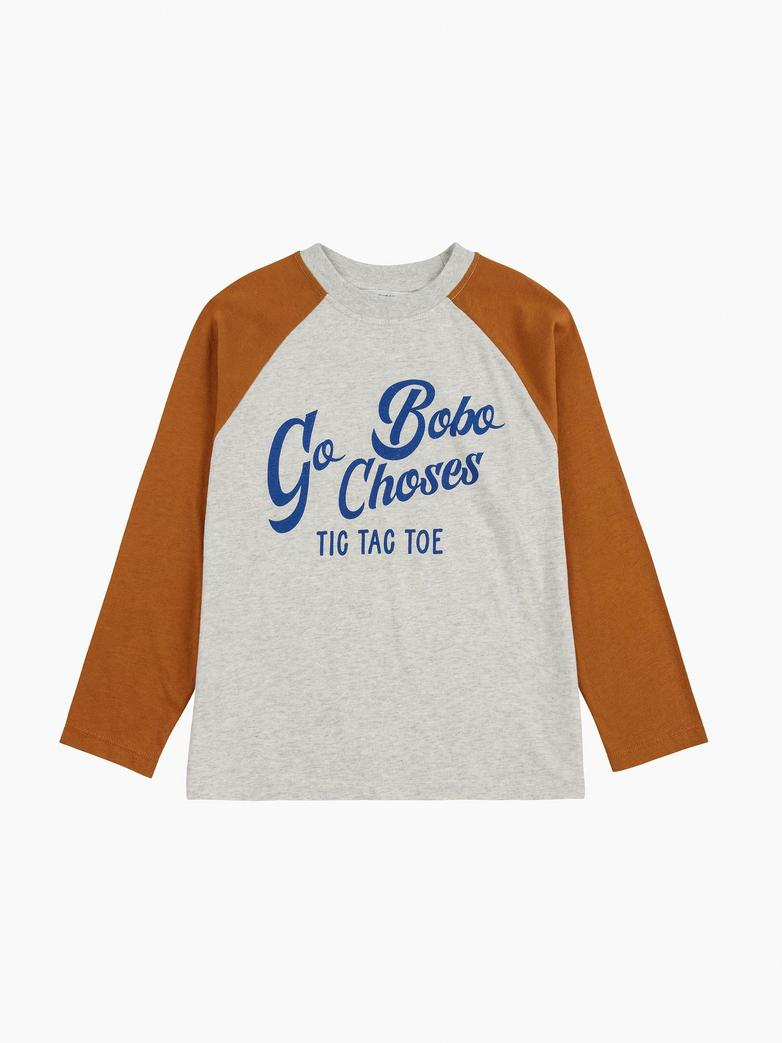 Koszulka z kolekcji Go Bobo z charakterystycznymi rękawami raglanowymi, uszyta w 100% z miękkiej bawełny organicznej. Zapewnia komfort noszenia i swobodę ruchów, idealna na każdy dzień pełen zabawy.