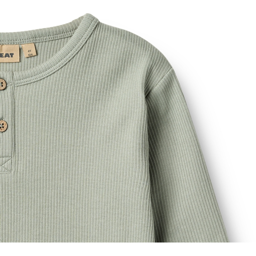 Miękki i przyjemny w dotyku t-shirt z długim rękawem dla starszych dzieci, wykonany z certyfikowanej organicznej bawełny z domieszką elastanu. Klasyczny, regularny krój zapewnia wygodę noszenia na co dzień, a subtelna listwa z dwoma guzikami z przodu dodaje mu ponadczasowego charakteru. Elastyczna, prążkowana struktura materiału sprawia, że koszulka świetnie dopasowuje się do sylwetki i nie krępuje ruchów.