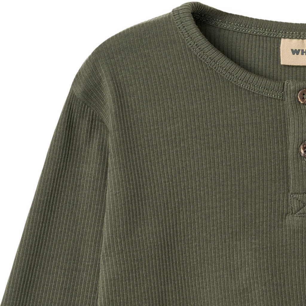 Miękki i przyjemny w dotyku t-shirt z długim rękawem dla starszych dzieci, wykonany z certyfikowanej organicznej bawełny z domieszką elastanu. Klasyczny, regularny krój zapewnia wygodę noszenia na co dzień, a subtelna listwa z dwoma guzikami z przodu dodaje mu ponadczasowego charakteru. Elastyczna, prążkowana struktura materiału sprawia, że koszulka świetnie dopasowuje się do sylwetki i nie krępuje ruchów.