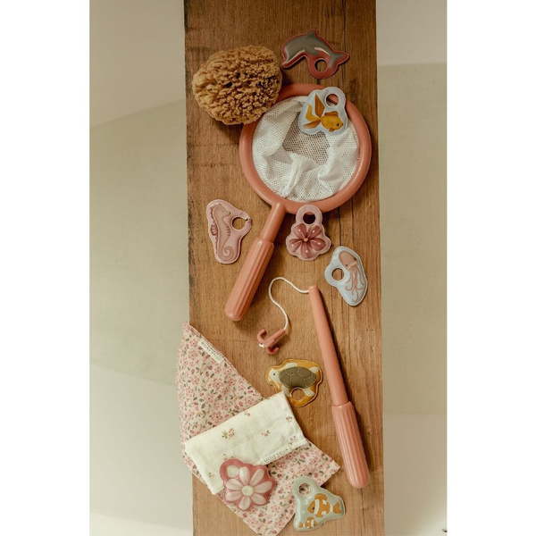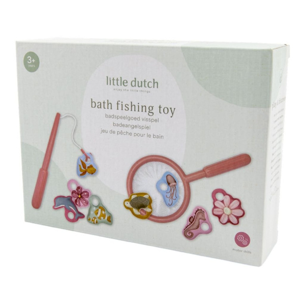 Gra zręcznościowa łowienie rybek- róż od Little Dutch to wspaniała zabawa podczas kąpieli. Zestaw zawiera wędkę, siatkę (podbierak) oraz osiem kolorowych figurek, w tym kwiaty i zwierzęta morskie. Łowienie, nabieranie i odkrywanie małe rączki mają nieograniczoną frajdę, jednocześnie ćwicząc swoje zdolności motoryczne. Rączki wędki i siatki można odkręcać, co ułatwia przechowywanie całego zestawu. Wspólne cieszenie się najlepszymi chwilami w wodzie nigdy nie było tak proste!