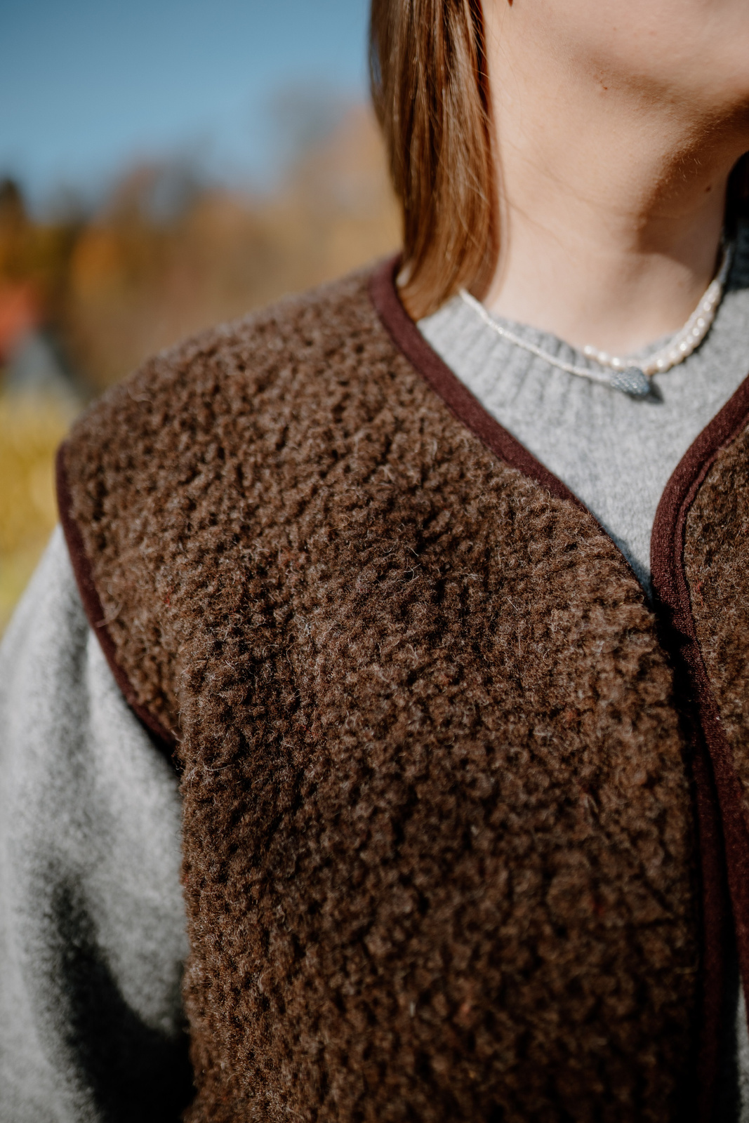 - Kamizelka Mimimi z certyfikowanej wełny merino Woolmark to lekka i naturalnie ciepła warstwa na chłodniejsze dni. Miękka, oddychająca i ponadczasowa. idealna dla kobiet ceniących prostotę i komfort.