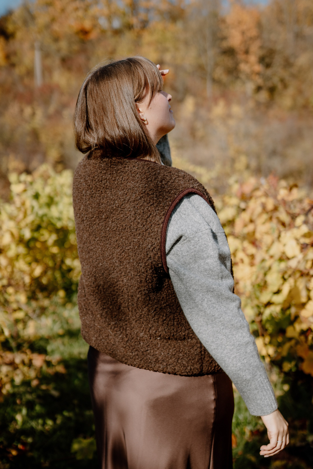 Kamizelka Mimimi to połączenie nowoczesnej formy i naturalnego komfortu. Wykonana w 100% z certyfikowanej wełny merino Woolmark, otula ciepłem, oddycha i doskonale dopasowuje się do sylwetki. To idealna warstwa przejściowa, lekka, miękka i niezwykle przyjemna w noszeniu.