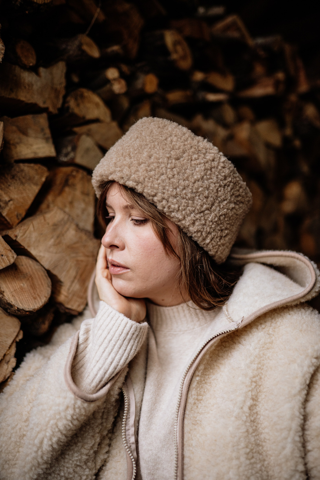 Puszysta, wełniana faktura otula naturalnym ciepłem bez uczucia przegrzania. Opaska jest elastyczna, dopasowuje się do kształtu głowy i pozostaje komfortowa nawet podczas całodziennego noszenia.