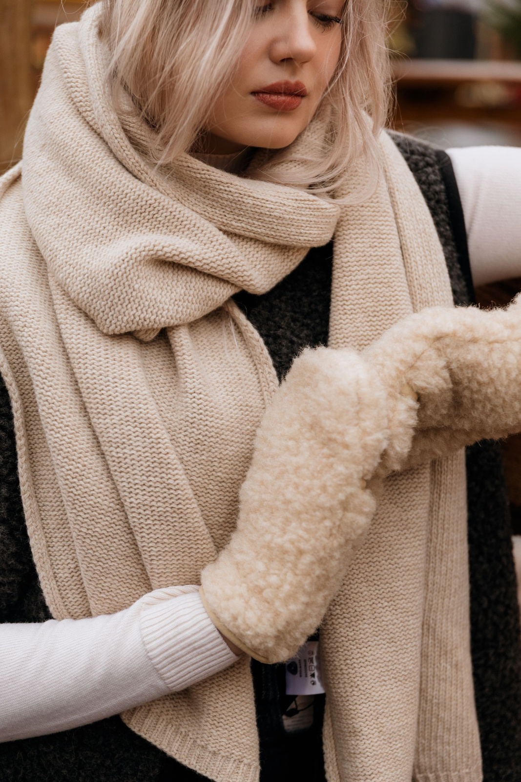 Mimimi - rękawiczki damskie z wełny merino - almond