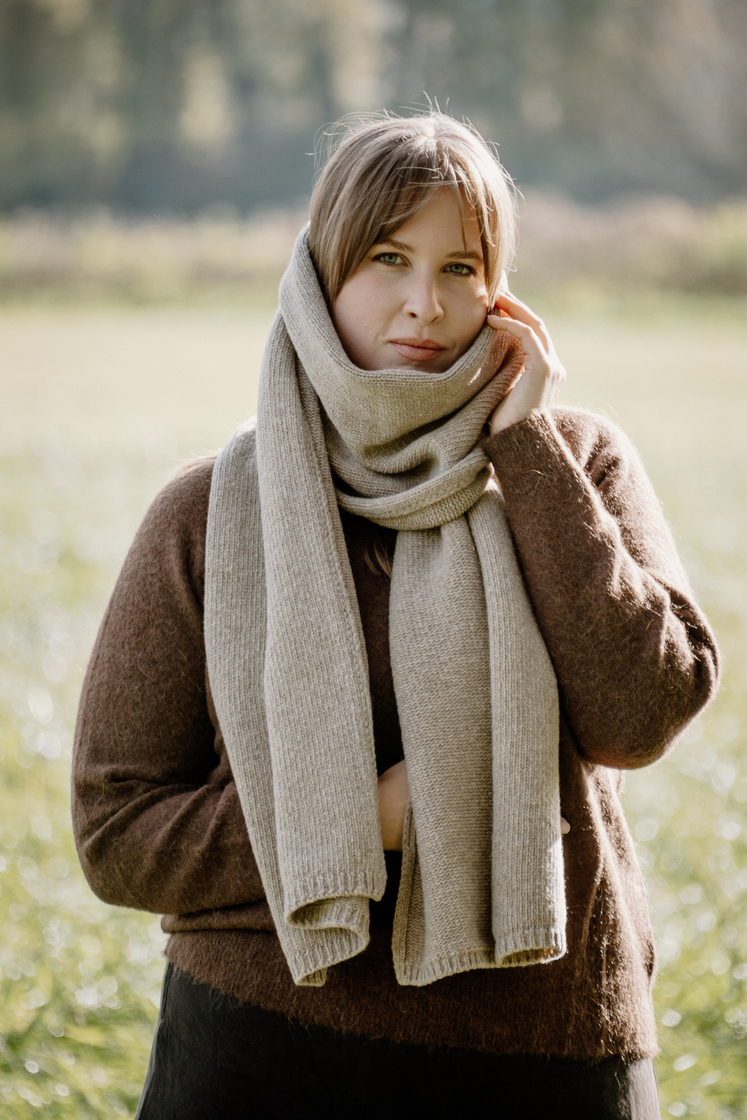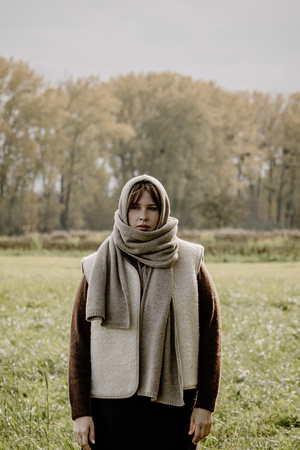 - Szalik Mimimi z certyfikowanej wełny merino Woolmark. Miękki, lekki i oddychający. Wymiary 40×200 cm, idealny do otulenia w chłodne dni.