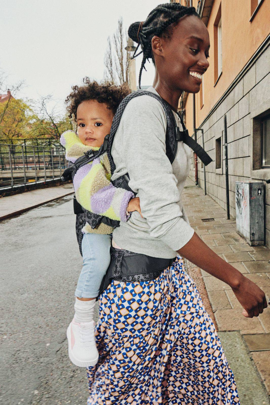 Przełożenie dziecka w nosidełku na plecy jest bardzo proste. Nosidełko jest zaprojektowane tak, że możesz zrobić to samodzielnie i bez wyjmowania dziecka. Podczas zmiany pozycji dziecko przez cały czas siedzi bezpiecznie w nosidełku.