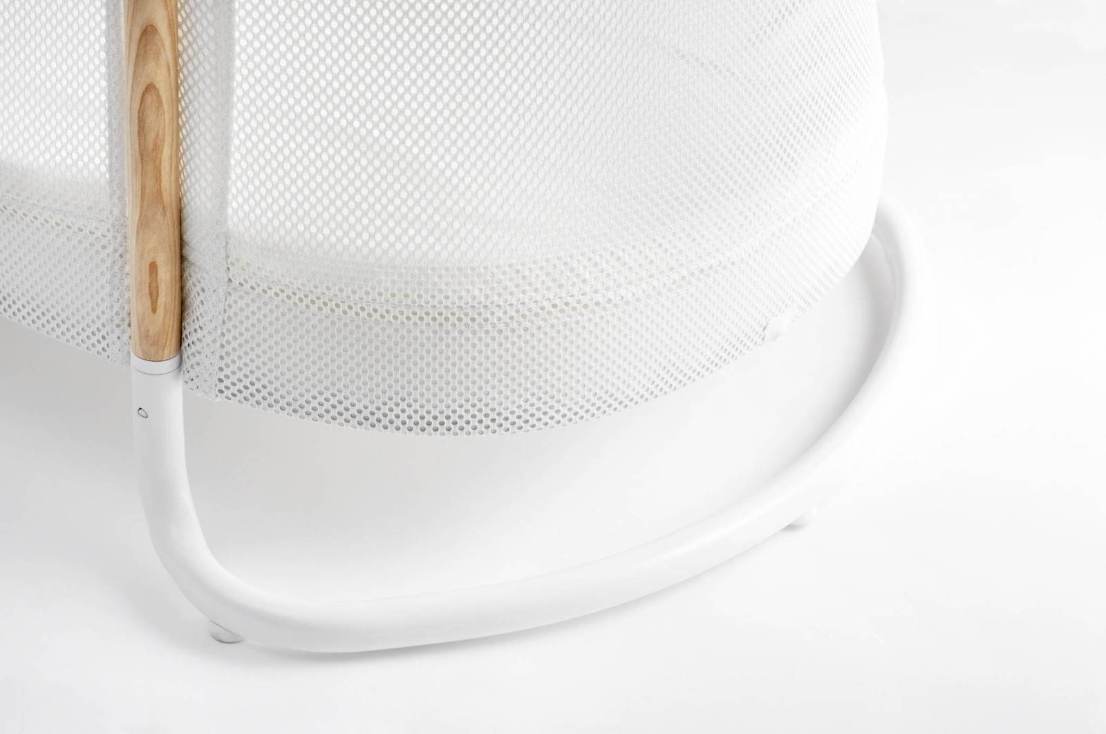 Bezpieczna, zwiewna konstrukcja zapewnia spokojny sen dziecka. Przewiewne boki łóżeczka są miękką siatką, która pozwala dziecku swobodnie oddychać, nawet jeśli twarz dziecka znajdzie się blisko boków. Dodatkowo siateczka ułatwia opiekunowi obserwację dziecka. Nie trzeba kupować ochraniaczy bocznych, ponieważ kołyska jest wykonana w całości z miękkiego materiału i nie posiada żadnych elementów, które mogłyby zranić delikatną skórę dziecka. Dopasowany materac został zintegrowany z boczną siatką, tworząc unikalne rozwiązanie, które zapewnia dobrą cyrkulację powietrza i oznacza, że rodzic nigdy nie musi się martwić o utknięcie rąk lub nóg dziecka między szczebelkami. Pokrycie łóżeczka zapinane na zamek błyskawiczny może otwierać i zamykać tylko osoba dorosła za pomocą dołączonej zawieszki do zamka. Łóżeczko posiada stabilną konstrukcję, a ochronne podkładki antypoślizgowe zabezpieczają mebel przed przesuwaniem się i chronią podłogę. - Wygodne dla dzieci w wieku 0-2 lata