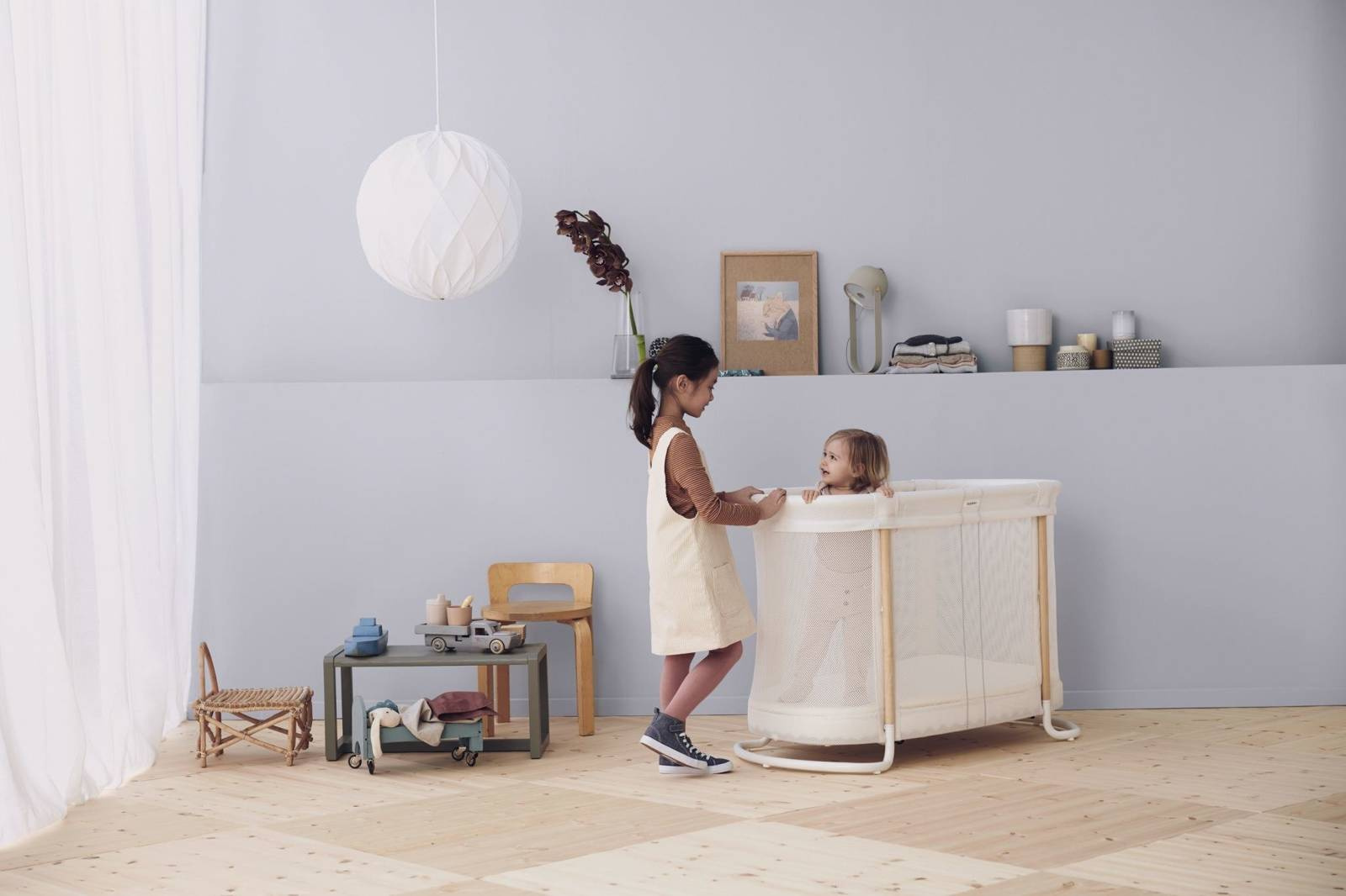 BabyBjörn BABY CRIB można ustawić na dwóch pozycjach wysokości - jedną dla niemowląt i jedną dla małych dzieci. To nie tylko ułatwia podnoszenie i wyjmowanie dziecka z łóżeczka przez rodzica, ale oznacza, że mebel może rosnąć wraz z dzieckiem, aż do wieku 2 lat. - Nowoczesny szwedzki design