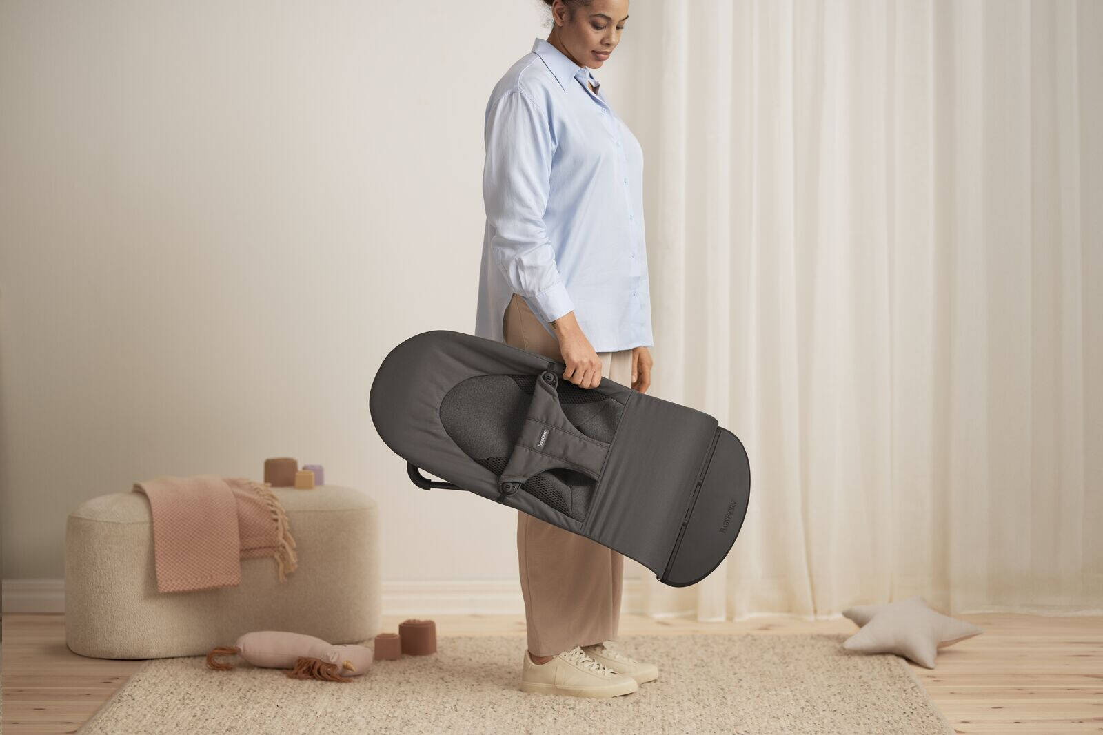 BABYBJORN - leżaczek BALANCE SOFT WOVEN/JERSEY Tri Fabric w kolorze Ciemny Szary z ramą w kolorze czarnym