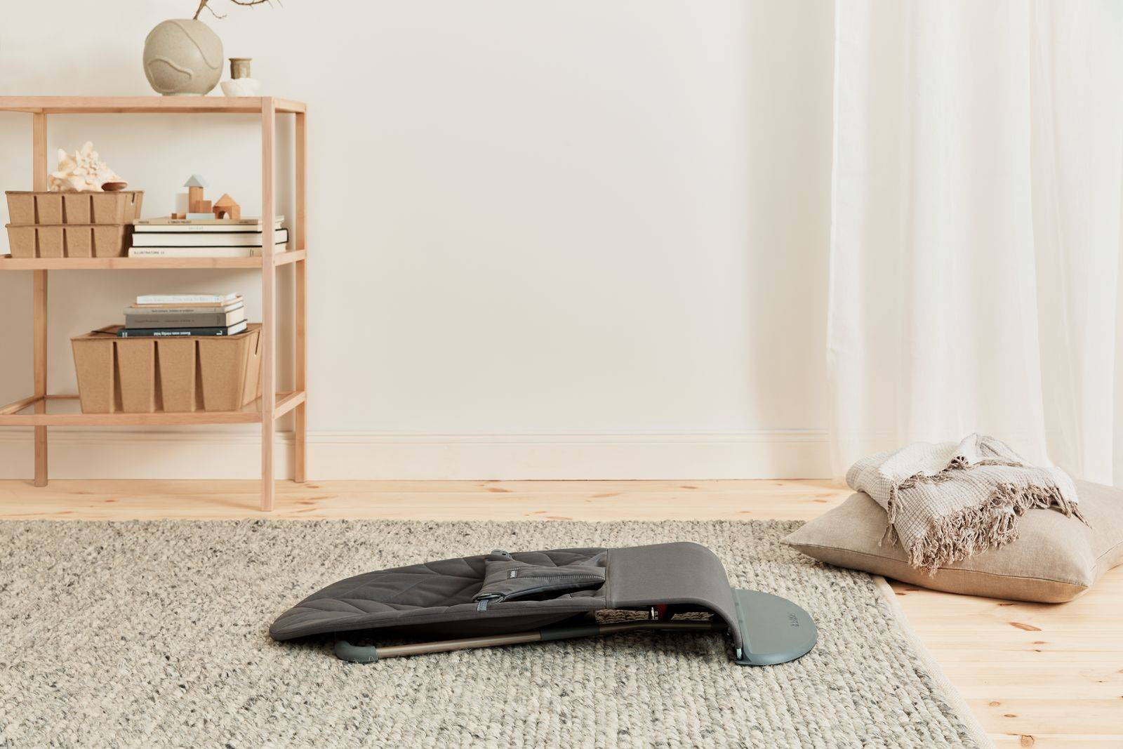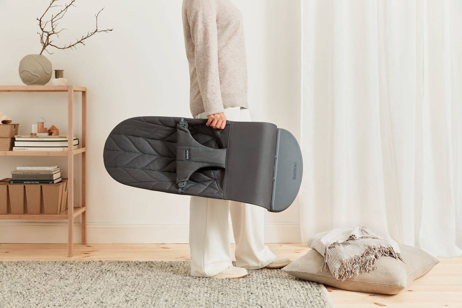 Dzięki dwustronnemu poszyciu leżaczek BABYBJÖRN Bliss może być użytkowany zarówno jako leżaczek jak i fotelik. Leżaczek jest idealnym rozwiązaniem od okresu niemowlęcego do momentu, w którym dziecko nauczy się stabilnie siedzieć. Dla starszych, już chodzących dzieci leżaczek można łatwo przekształcić w wygodny fotelik - wystarczy zdjąć i odwrócić materiał z oparcia oraz zmienić jego stopień nachylenia.