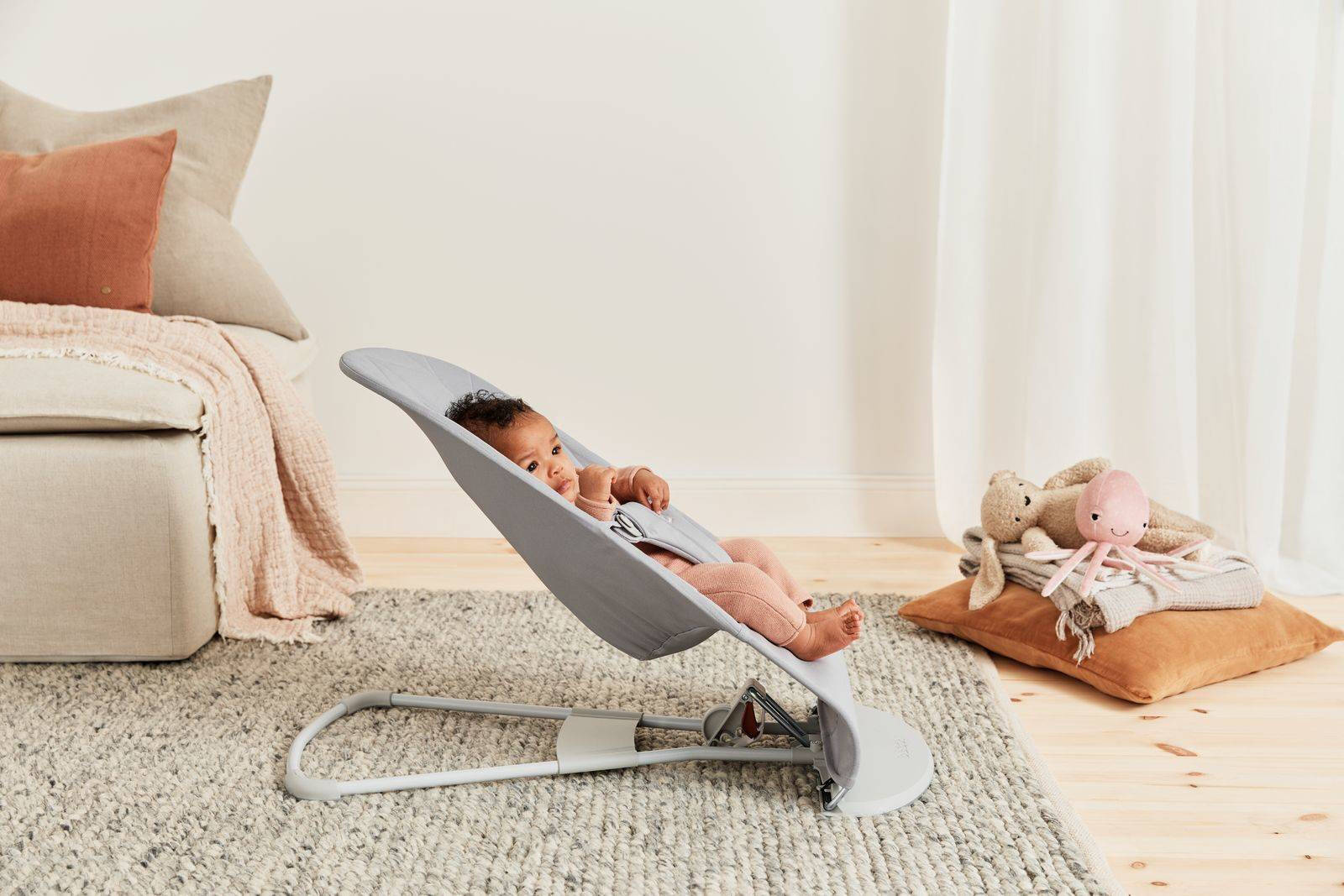 Dzięki dwustronnemu poszyciu leżaczek BABYBJÖRN Bliss może być użytkowany zarówno jako leżaczek jak i fotelik. Leżaczek jest idealnym rozwiązaniem od okresu niemowlęcego do momentu, w którym dziecko nauczy się stabilnie siedzieć. Dla starszych, już chodzących dzieci leżaczek można łatwo przekształcić w wygodny fotelik - wystarczy zdjąć i odwrócić materiał z oparcia oraz zmienić jego stopień nachylenia.