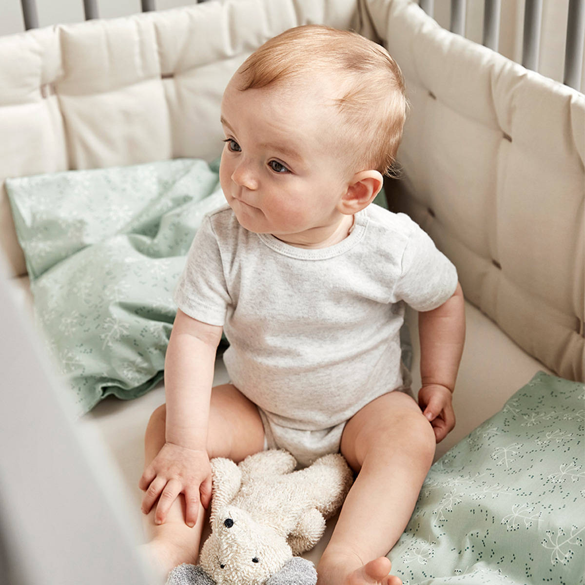 Pościel dla niemowląt wykonano z bawełny organicznej, która jest miękka i przyjemna w dotyku. Pościel odpowiada standardowym wymiarom kołder „baby” (70x100 cm) i poduszek (40x45 cm).