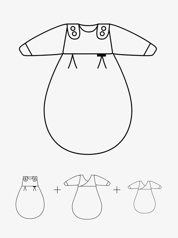 - Śpiworek ALVI rośnie wraz z dzieckiem dzięki guziczkom wokół szyi, co umożliwia regulację rozmiaru ramion i całego śpiworka.