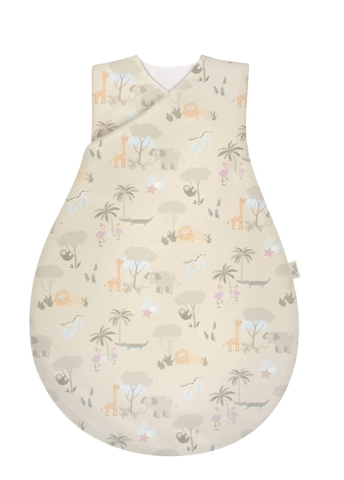 Śpiworek został wykonany w 100% z miękkiej bawełny, który delikatnie dopasowuje się do skóry dziecka, zapewniając przytulność i komfort. Wypełnienie z polaru o gramaturze 50 g sprawia, że produkt idealnie sprawdza się jako śpiworek przejściowy – na okres, gdy jest za zimno na lekki śpiworek, ale za ciepło na gruby śpiworek termiczny.