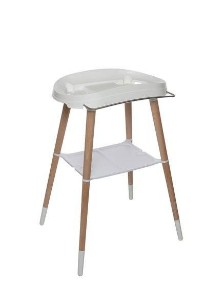 Stojak do wanienek z kolekcji Sense od bébé-jou. Wygodny, wysoki stojak do wanienek Bebe-Jou Sense. Zupełna nowość na rynku - stojak posiada drewniane nóżki, wykonane z certyfikowanego drewna bukowego FSC. Lakier jest wolny od emisji formaldehydu i nie zawiera szkodliwych substancji. Stojak jest bardzo stabilny i wygodny, nie przesuwa się. Posiada system Click, który jest idealnie dopasowany z wanienką dla maksymalnego bezpieczeństwa podczas kąpieli malucha. Odpowiednia wysokość stojaka jest komfortowa podczas kąpieli dziecka.Posiada półeczkę na akcesoria kąpielowe oraz wieszaczek na ręcznik lub poncho kąpielowe. Wygląda bardzo przyjemnie i elegancko. Pasuje do wszystkich wanienek z kolekcji Sense. Nie zabiera dużo miejsca. Nie jest to stojak składany. Aby go złożyć należy rozkręcić nóżki. Zapakowany w nieduży karton.
