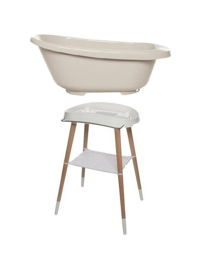 • bébé-jou Zestaw Wanienka Sense Taupe + Stojak bukowy Biały