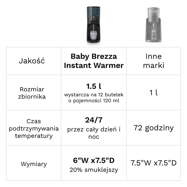 Instant Warmer Black od Baby Brezza to podgrzewacz wody do przygotowywania mleka modyfikowanego dla niemowląt. Przygotowanie butelki dla głodnego maluszka właśnie stało się dużo łatwiejsze i szybsze. Dzięki Baby Brezza będziesz miał dostęp do wody w idealnej temperaturze przez cały czas. Koniec z czekaniem, aż tradycyjny podgrzewacz do butelek podgrzeje wodę, byś Ty mógł przygotować pokarm. Naciśnij dźwignię, aby dozować ciepłą wodę w wybranej temperaturze, wsyp odpowiednią ilość mleka modyfikowanego i wymieszaj, a w ciągu kilku sekund butelka będzie gotowa do podania!