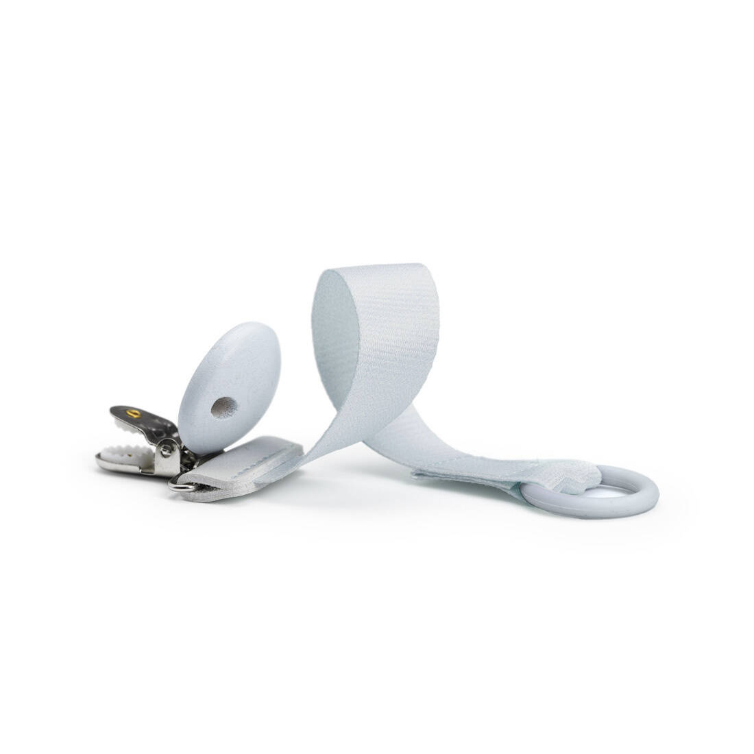 Pierścień można przymocować do niemal wszystkich smoczków dostępnych na rynku, a drewniany klips do ubranka Twojego dziecka.