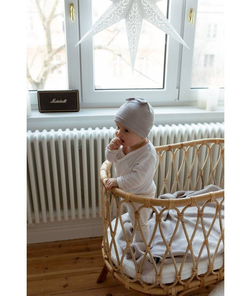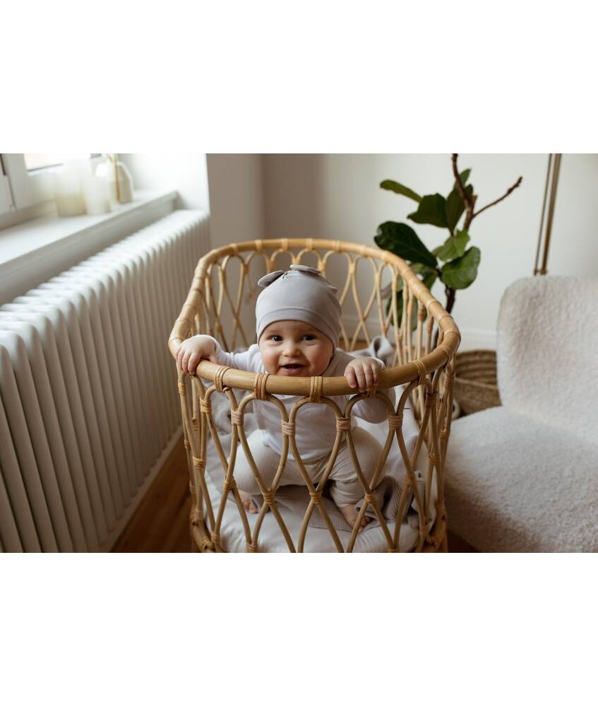 Ubranka uszyte są z bawełny organicznej, dlatego zadbać o ich pielęgnację. Zalecamy pranie w delikatnym płynie, w temperaturze maksymalnej 40°C. Aby cieszyć się długim użytkowaniem, sugerujemy korzystanie z niskich obrotów wirowania, maksymalne: 1000 obr/min. Nie suszyć w suszarce bębnowej i nie chlorować.