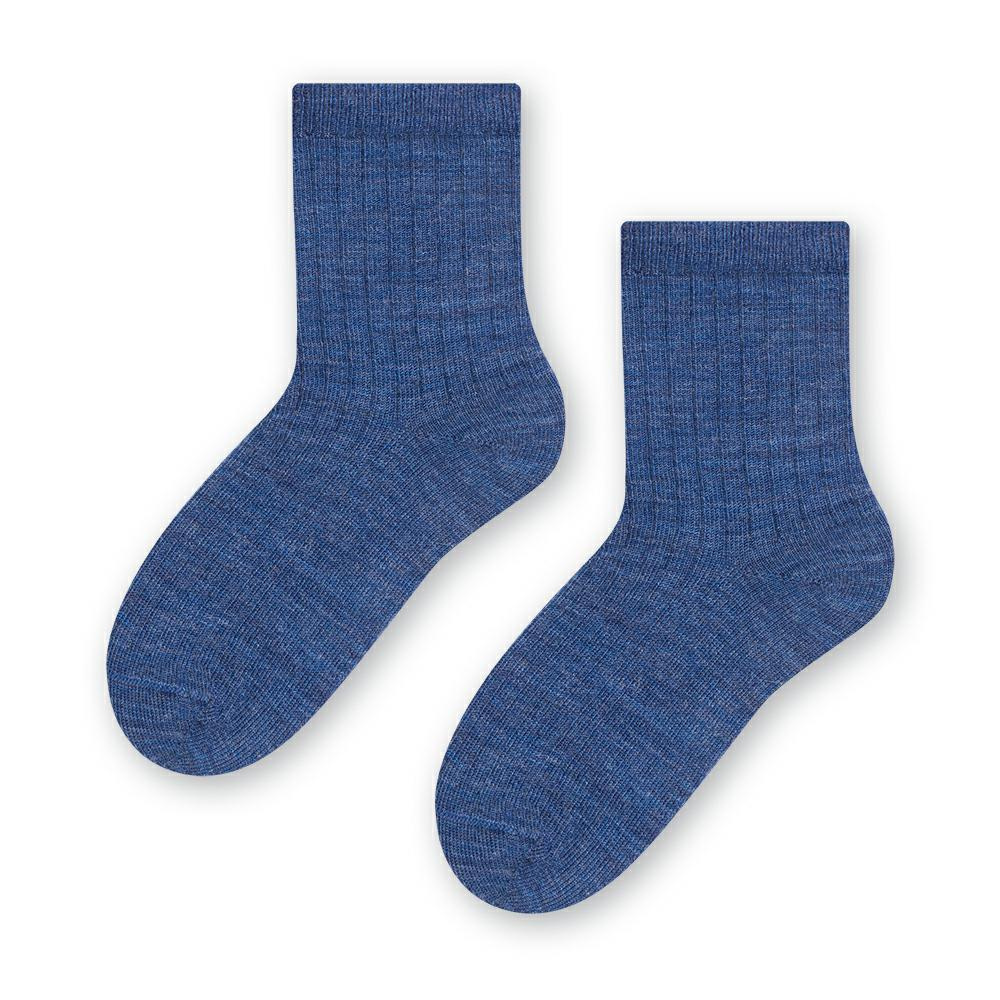 Steven - Skarpetki z wełny merynosów bezuciskowe w prążki dziecięce -jeans