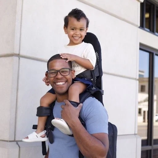 - Works with child shoulder carrier