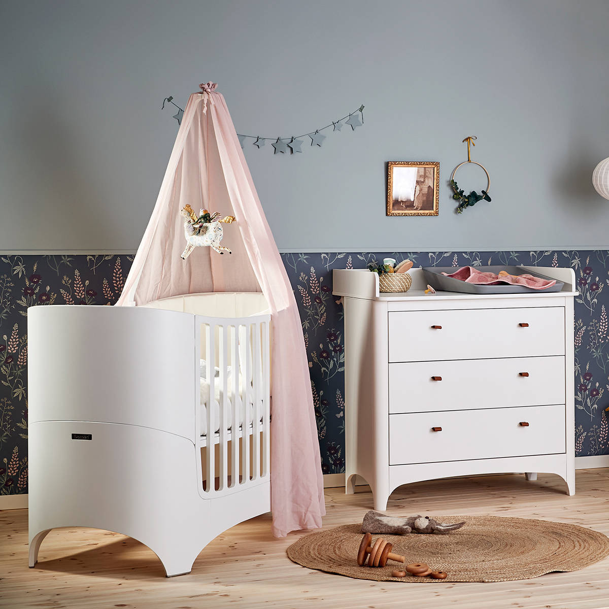 Zmień komodę Leander Classic™ w stanowisko do przewijania, dodając dedykowany przewijak lub przewijak Leander Matty™.