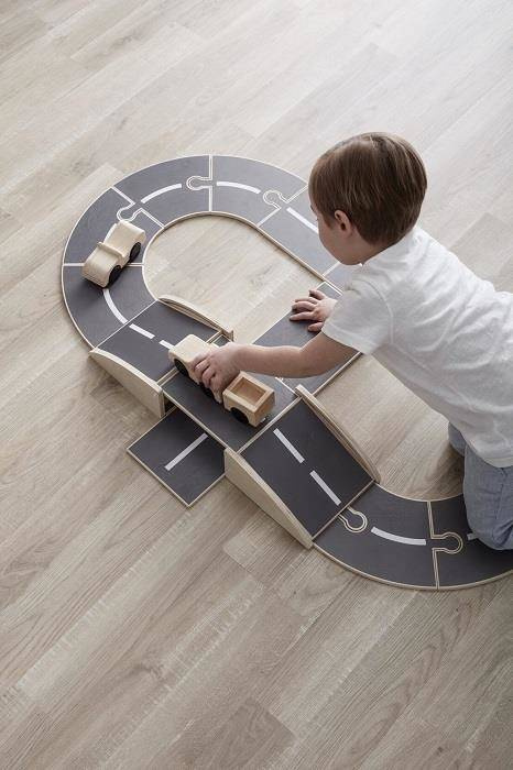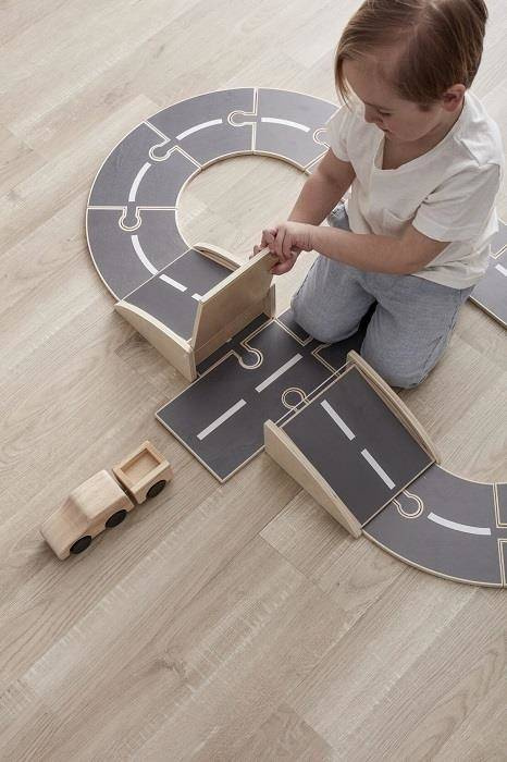 Duża drewniana droga dla pojazdów z otwieranym mostem, pasuje idealnie do samochodów i autobusów z kolekcji Aiden. Drewniana droga z mostem w formie drewnianych puzzli jest świetną propozycją do zabaw dla każdego dziecka. Ułożony tor składa się z 18 drewnianych elementów wykonany z wysokiej jakości materiałów pomalowane lakierem na bazie wody. Zabawa rozwija zdolności ruchowe, wyobraźnię dziecka, uczy logicznego myślenia. Drewniana droga do układania inspiruje dzieci do kreatywnej zabawy. Zapakowna w kartonowe pudełko będzie doskonałym prezentem.