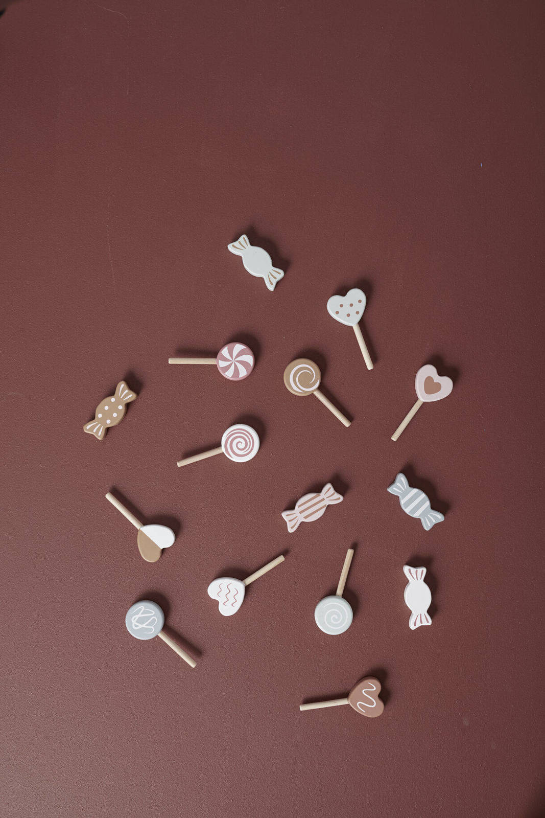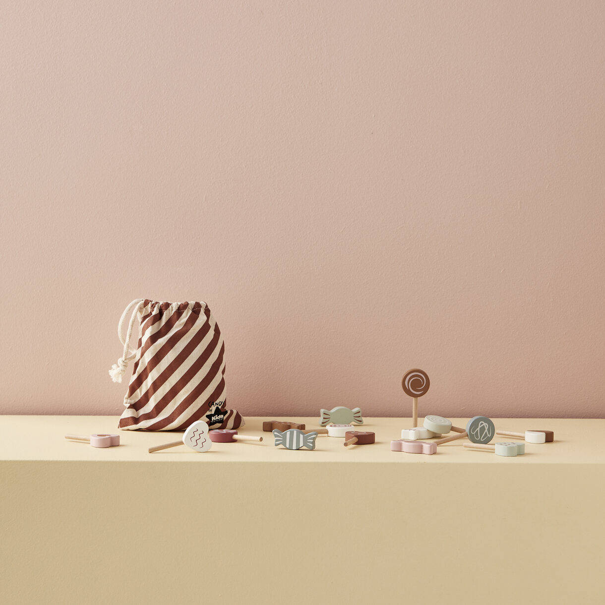 Pięknie ozdobione kolorowe cukierki i lizaki o apetycznym wyglądzie z pewnością spodobają się Twojemu dziecku. Zapakowane w mały uroczy woreczek będą idealnym prezentem nie tylko dla małych łakomczuszków. Słodycze wykonane są z najwyższej jakości drewna. Dziecko będzie mogło zabrać ze sobą wszędzie i bawić się nimi nie tylko w domu, ale także w czasie podróży czy na wakacjach. Idealne do zabawy w sklep :)