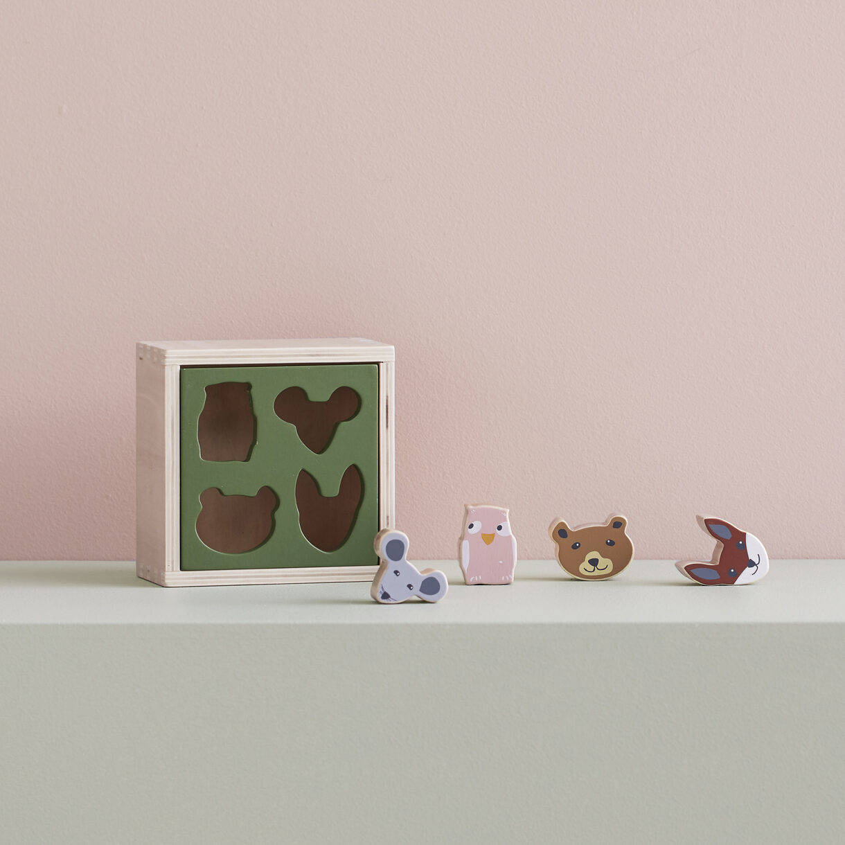 Drewniany sorter z czterema klockami o różnych kształtach łączy w sobie najlepsze cechy zabawek manualnych oraz rozwijających zdolności rozumowania. Postacie zwierzątek - niedźwiedź Max, mysz Tor, lis Ed, sowa Ola i kolory klocków sprawią, że zabawa nimi będzie przyjemna i edukacyjna. Podczas zabawy dzieci uczą się rozpoznawania zwierzątek kolorów oraz precyzyjności podczas wrzucania klocków do odpowiednich otworów. Gdy dziecko umieści wszystkie klocki w sorterze, może po prostu otworzyć wieko i zacząć zabawę od nowa. Zarówno klocki jak i pudełko zostały wykonane z wysokiej jakości materiałów. Zabawka inspiruje malucha do kreatywnej zabawy. Produkt zgodny z aktualnymi standardami bezpieczeństwa UE.