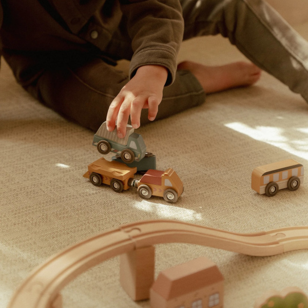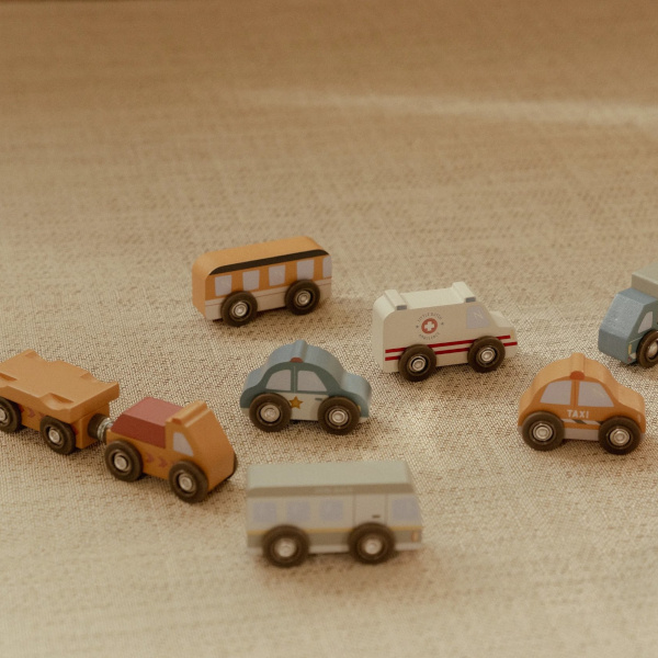 Zestaw aut składa się z karetki pogotowia, samochodu policyjnego i wozu strażackiego, wykonanych drewna i pięknie malowanych bezpiecznymi farbami na bazie wody. Dzięki tym specjalnym pojazdom dzieci uczą się współpracować poprzez odgrywanie ról i oferować pomoc innym. Zapakowany w ładne opakowanie z szybką, idealny na prezent. Łatwy i wygodny do chwytania przez małe rączki.