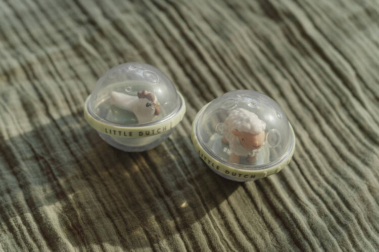 Kuleczki rotacyjne Little Farm od Little Dutch. 1,2,3 i zacznij toczyć! Te rotacyjne kulki mają w środku w dwóch super zabawnych przyjaciół z farmy: owcę i kurczaka. Kulki świetnie nadają się do kąpieli, nie toną, jednak po użyciu należy ją odpowiednio wysuszyć. Rozmiar jest idealny dla małych rączek. Kuleczki rotacyjne stanowią doskonałe uzupełnienie dla pozostałych produktów dla maluszków z kolekcji Little Farm.