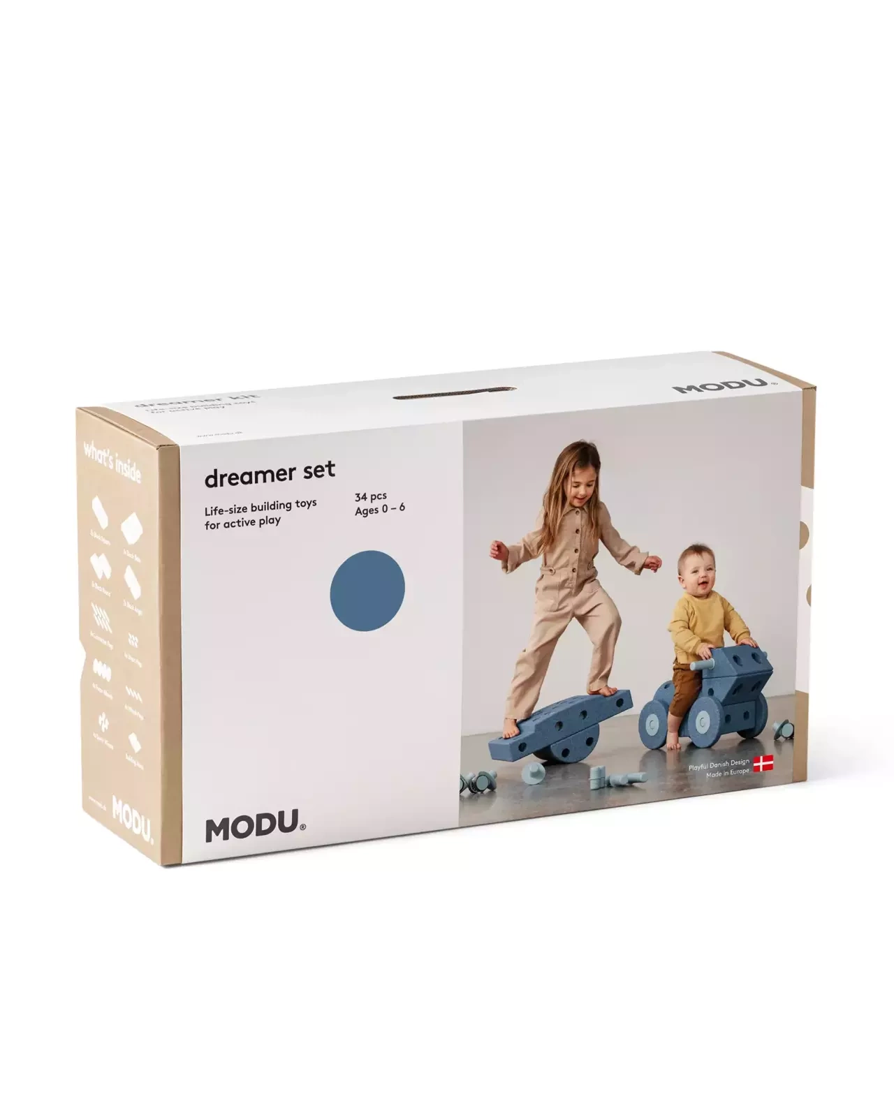 - MODU Dreamer set - Kreatywne klocki rozwijające motorykę dużą gwarantują super zabawę dla dzieci i dorosłych. Rozwijają zdolności motoryczne. Jeździk, deska balansująca, aut, mebelki - z MODU zbudujesz wszystko. Materiał w 100% do recyklingu.