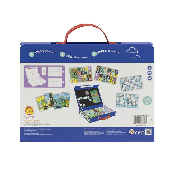 Magnetyczne Abecadło - Zwierzęta od Tiger Tribe to interaktywna zabawa dla dzieci uczących się od najmłodszych lat alfabetu, rozpoznawania słów i dźwięków. Magnetyczne Abecadło oferuje proste metody, które pomogą dzieciom budować pewność siebie na drodze do doskonalenia umiejętności czytania i pisania. Praktyczne, przenośne i wytrzymałe etui zostało zaprojektowane tak, aby wszystkie elementy magnetyczne i karty z obrazkami przechowywać w jednym miejscu. Idealne do zabrania w podróż lub do restauracji. Edukacyjne i, co ważniejsze, zabawne! Magnetyczne Abecadło zaangażuje i zachwyci dzieci na wiele godzin.
