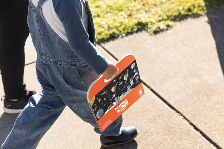 Przenośne Magnesy - Kosmos od Tiger Tribe to przenośna magnetyczna plansza z całą masą obrazków do zabawy. Lataj rakietami i wahadłowcami o najróżniejszych kształtach i rozmiarach, zatknij swoją flagę na Księżycu lub wybierz się na kosmiczny spacer w warunkach zerowej grawitacji. A gdy skończysz, pakowanie jest super zabawne dzięki układance „dopasuj magnesy” na pudełku. 1,2,3 i posprzątane! Magnesy zostały zaprojektowane i zilustrowane w Australii przez zespół Tiger Tribe. Zestaw pomaga rozwijać wyobraźnię i umiejętności motoryczne, jednocześnie zachęcając do samodzielnej zabawy. Każdy zestaw zawiera 2 arkusze magnesów i jest przenośny - łatwy do złożenia i zabrania ze sobą.