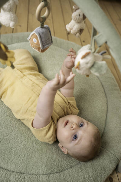 Mata aktywizująca z pałąkiem Little Farm od Little Dutch. Mata to doskonałe rozwiązanie dla dzieci już od urodzenia. Na mięciutkiej macie, maluszek może leżeć i obserwować otaczający go świat. Mata jest bardzo puszysta, mięciutka. Pałąk maty (miękki i bezpieczny), posiada 5 różnorodnych zawieszek z kolekcji Little Farm. Zabawki są miękkie i zachęcają dziecko do ich dotykania i obserwowania. Każda zabawka jest zdejmowana z pałąka, przez co można się nią bawić również na macie lub gdy maluch jest starszy, np. w wózku. Świetna, rozwijająca zabawa gwarantowana! Stanowi doskonałe uzupełnienie do pozostałych produktów z kolekcji Little Farm. Wspaniały pomysł na prezent.