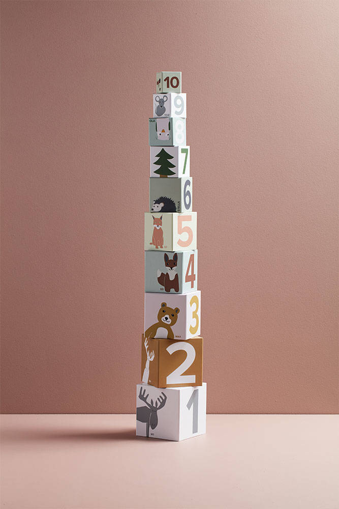 Kostki do układania wieży wykonane z tekturki, zapewnią świetną i bezpieczną zabawę dla dzieci. Budowanie, a potem przewracanie, da im wiele radości. Można układać je na wiele sposobów od najmniejszego do największego i odwrotnie tworząc wysoką wieżę. Starannie wykonane, trwałe, a zarazem lekkie tekturowe klocki stanowią idealną zabawkę dla małych dzieci. Dziesięć wielokolorowych i różnej wielkości kostek do układania w stos zapewnią zabawę jednocześnie ucząc malucha liczb i rozpoznawania leśnych zwierzątek. Zabawa pozwala dziecku rozwinąć logiczne myślenie oraz umiejętności motoryczne, ćwicząc siłę w paluszkach. Będą doskonałym elementem dekoracyjnym w pokoju dziecięcym.